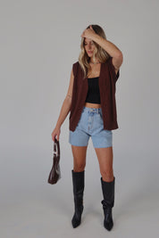Brown Sleeveless Button-Down Sweater