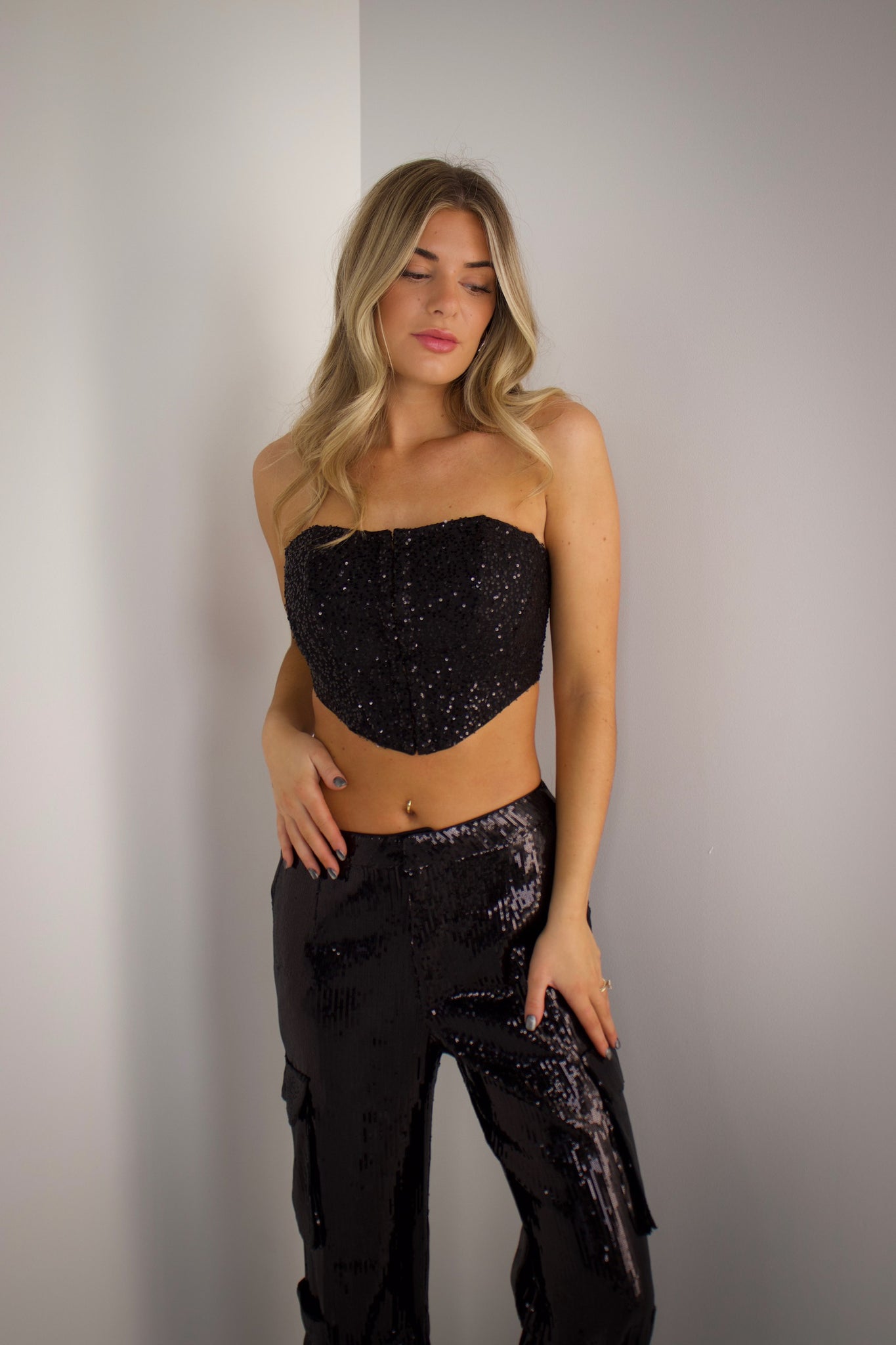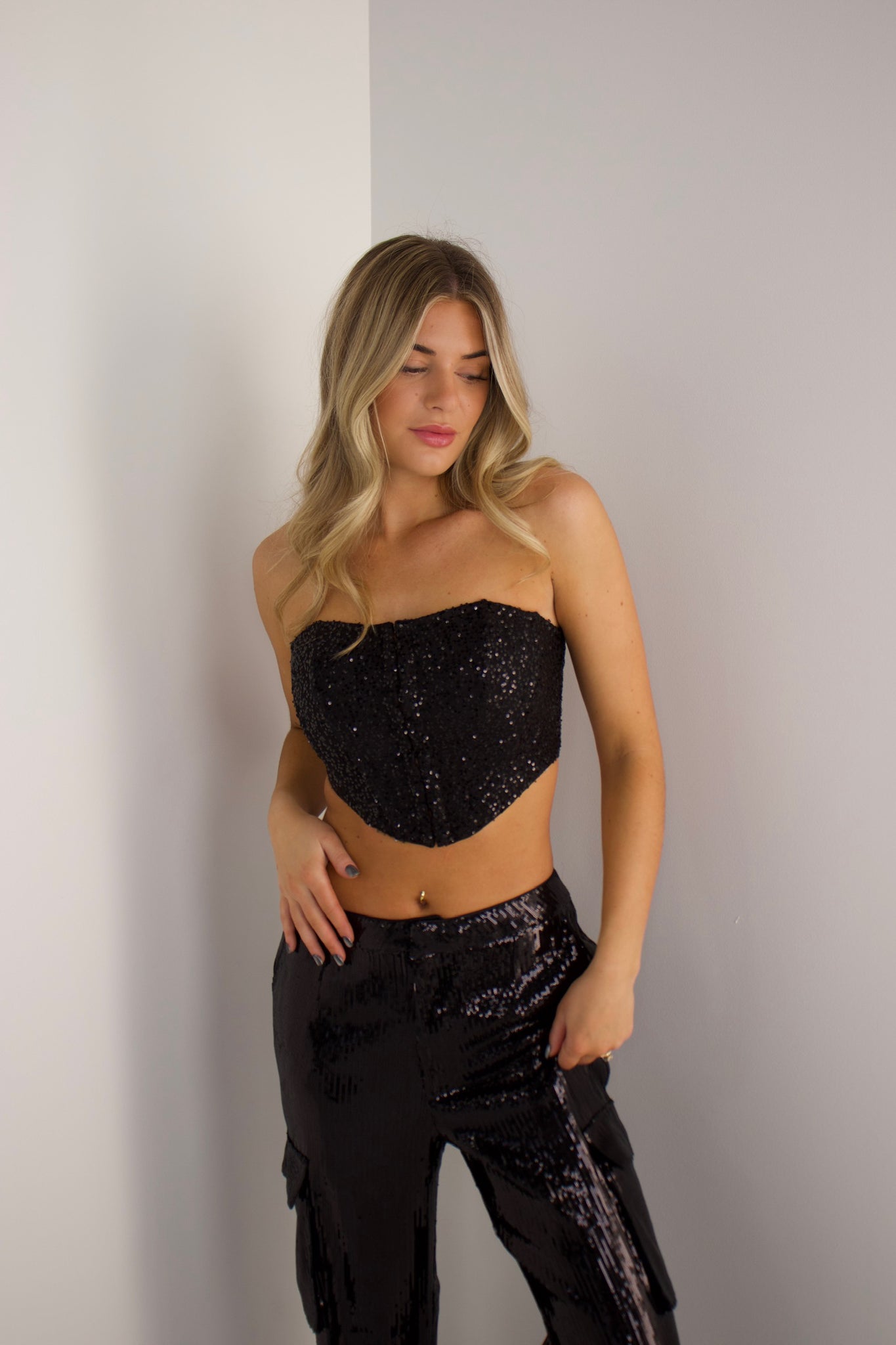 Neva Sequin Corset Top In Black