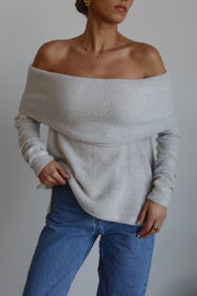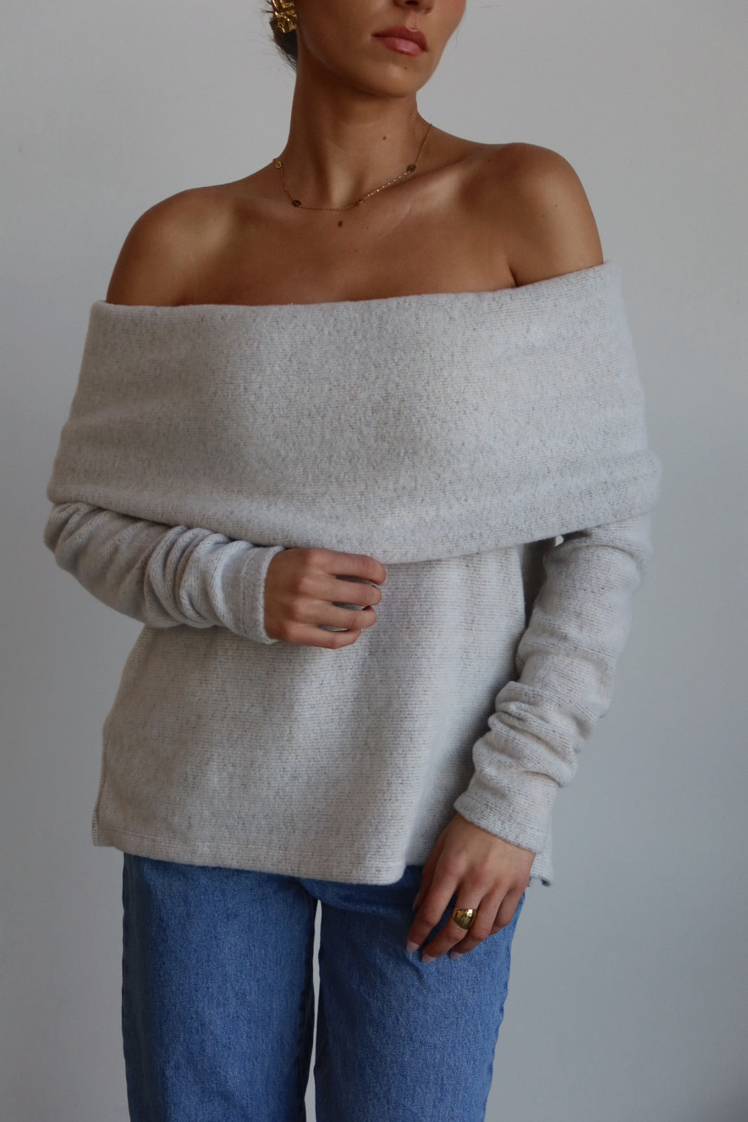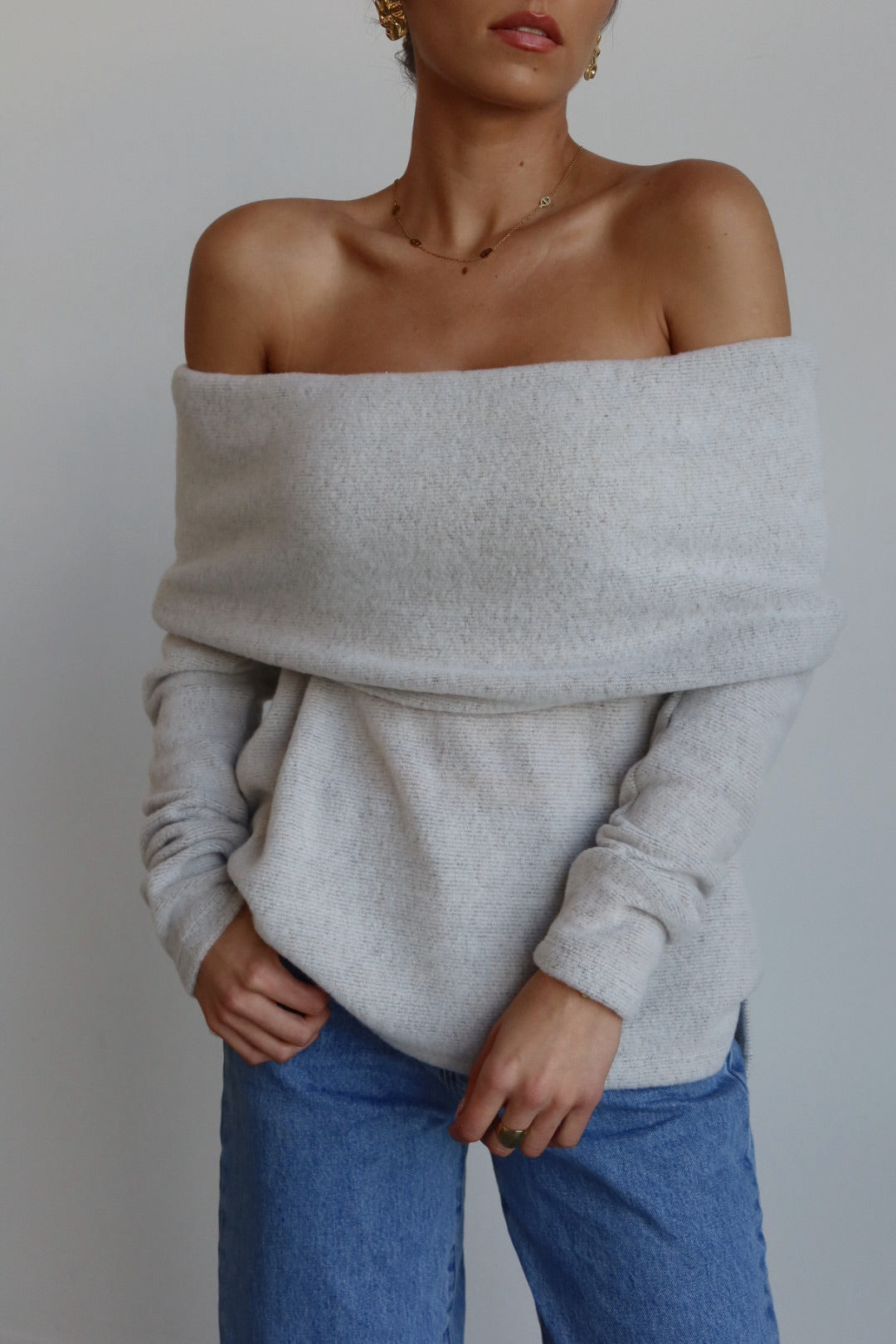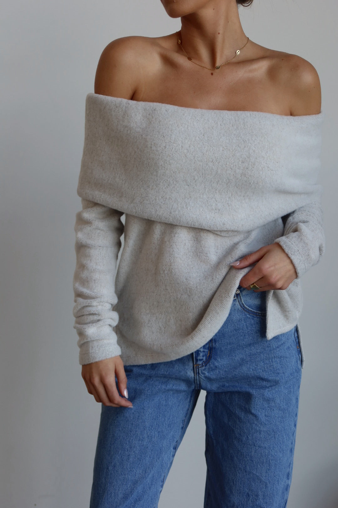 Cozy Luxe Off-Shoulder Hacci Top in Light Grey